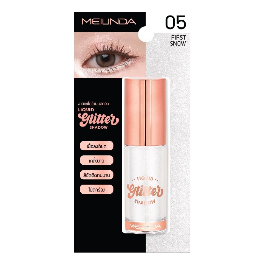 MEILINDA Liquid Glitter Shadow No05 — First Snow Melinda Liquid Glitter Shadow No. 05 — First Snow Liquid Glitter Shadow 2 new colors create a charming pair of eyes with Liquid Glitter. Eye shadow, easy to blend, long lasting, beautiful all day long, makeup around the eyes, with glitter to make the eyes stand out, beautiful, charming to make the eyes look beautiful, fine texture, easy to blend, not fall into the groove, clear color, durable. Waterproof, make your eyes sparkle all day long. Silver, sparkling like diamonds. New color with the same famous glitter eyeshadow. Easy to blend liquid eyeshadow. Packed with concentrated pearl powder. Adds beauty to the eyes to sparkle all day long. and add distinctiveness to the eyes Plus, it's a liquid that is easy to spread. Not greasy, suitable for all ages, easy to carry. Storage should be tightly closed.