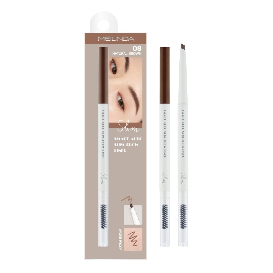 Meilinda Smart Auto Slim Brow Liner Melinda Smart Auto Slim Brow Liner Eyebrow pencil has a total of 9 colors, slim shape, soft texture. Give beautiful eyebrows a natural shape, long lasting, waterproof, sweat proof all day. Eyebrow pencil with soft, smooth texture, clear color, easy to write, and naturally beautiful eyebrows become easy. Comes with waterproof and long-lasting properties, easy to write, sharp lines, making the eyebrow shape look beautiful and sharp all day long. The texture of the pencil is soft and smooth. Easy to write, not flaky or clumping. Provides concentrated pigments, looks smooth, not easy to smudge, waterproof, able to stay long lasting all day. Helps to fill in the shape of the eyebrows harmoniously. and is natural Make eyebrow styling easy. Coat the eyebrow hairs to be naturally beautiful. With waterproof properties, sweat proof, long lasting, no problem with faded eyebrows during the day. Long lasting throughout the day, comes with a built-in eyebrow brush. Tip: Turn the pencil lead out slightly to prevent it from breaking during use.