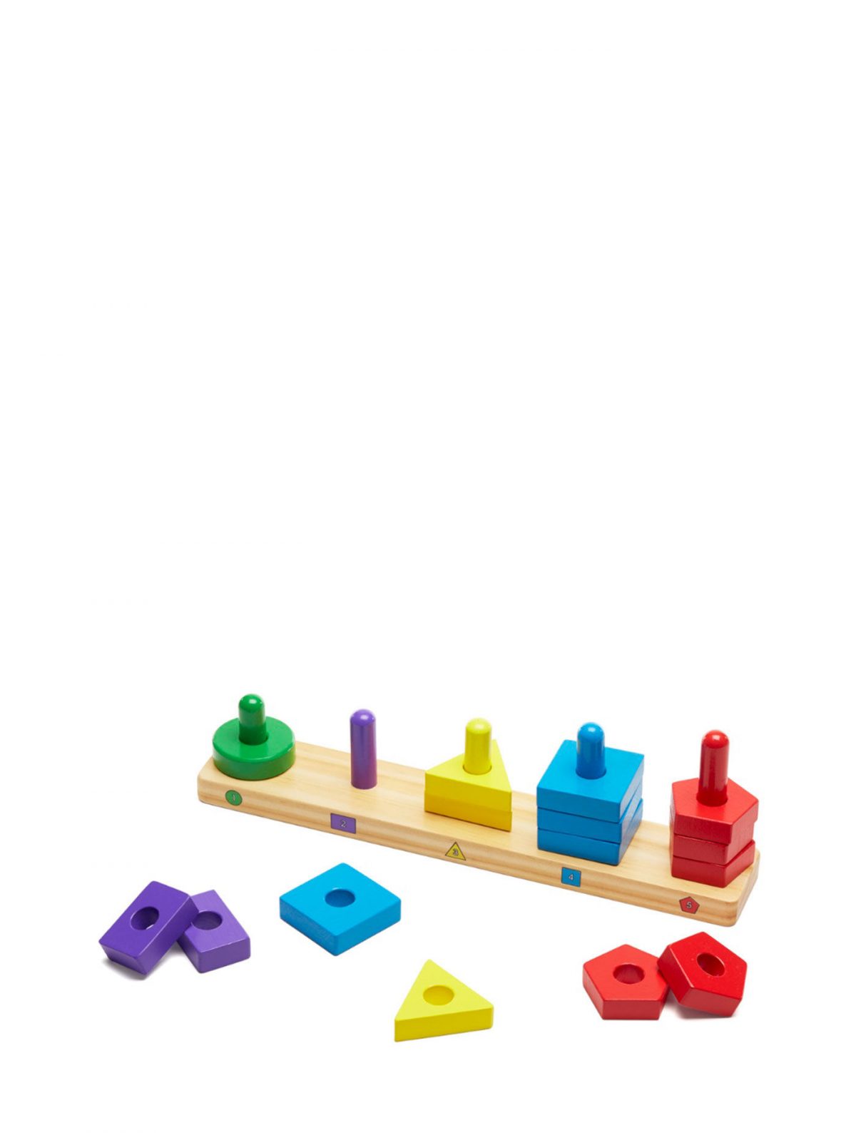 The 15 wooden pieces in this set offer a variety of colors, shapes and opportunities for learning. A printed key on the wooden base offers guidance when it’s wanted, but the possibilities for play are endless! Use these colorful blocks to encourage matching, counting, stacking, dexterity, fine motor skills, color recognition and more. This is a classic toy that every toddler should start with!