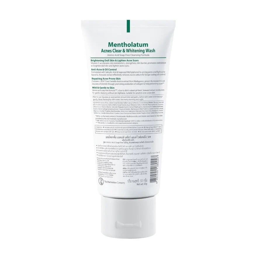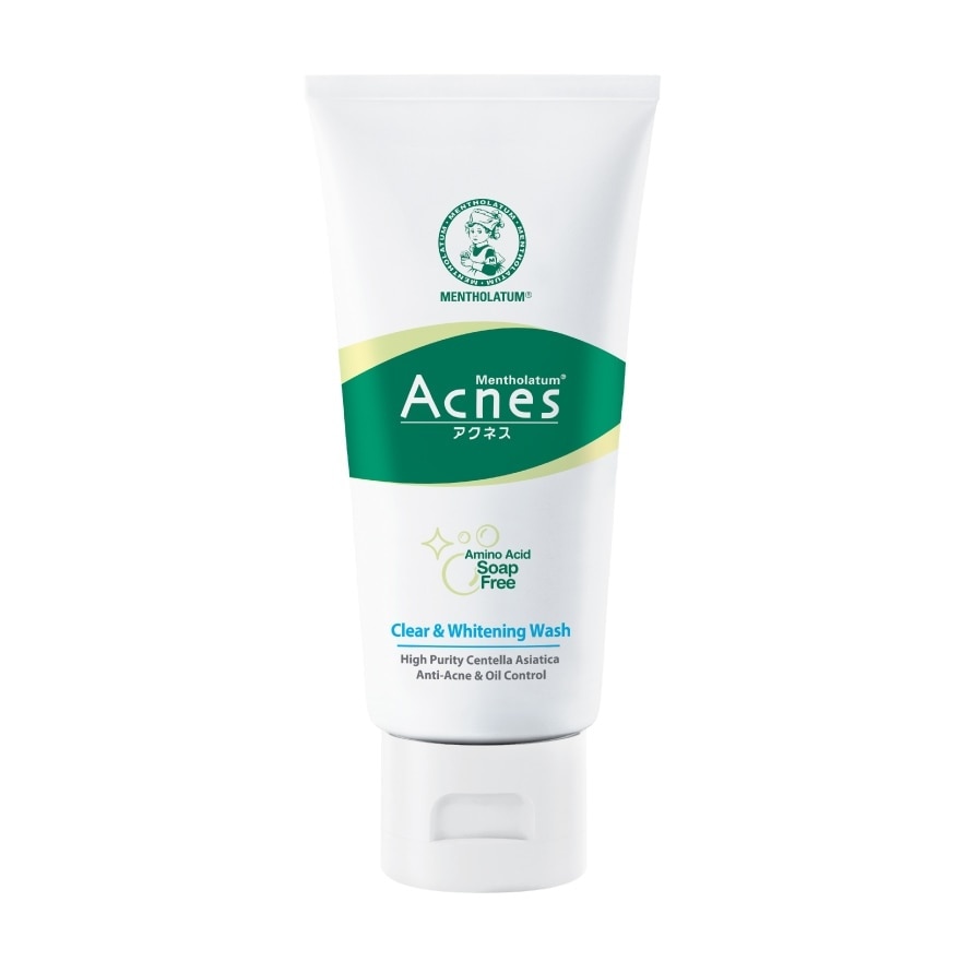 Mentholatum Acnes Clear & Whitening Wash Facial Cleanser Soap Free & whitening formula helps to remove and control oil as a cause of acne. Squeeze an appropriate amount into wet palms, lather with water and massage gently. Rinse thoroughly with water. Use every morning and night. — Brightening Dull Skin with Vitamin C — Amino Acid Soap-Free Cleanser mild and gentle cleanser, close to skin’s natural pH level. — Salicylic Acid to helps unclog pores and fight acne bacteria. — Soothes Acne Redness by Pure Centella Asiatica extract from Madagascar — Avocado extract effectively removes excess sebum for long lasting oil control.