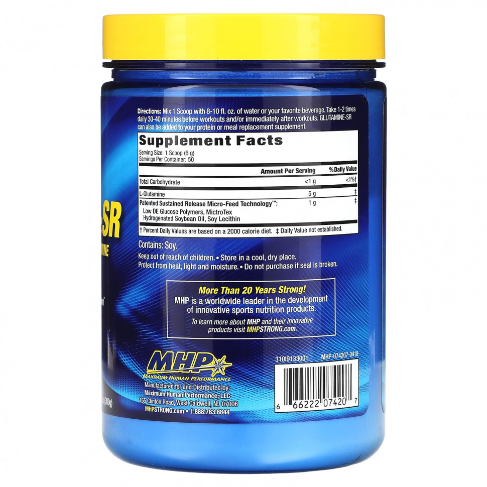 Glutamine-SR содержит эффективную дозу L-глютамина, который является самой распространенной аминокислотой в организме и используется кишечником, иммунной системой и мышцами в качестве топлива. Упражнения высокой интенсивности и строгая диета могут снизить концентрацию глютамина. Добавка с глютамином помогает пополнить запасы глютамина, который поддерживает иммунную систему, ускоряет восстановление и повышает синтез мышечного белка.