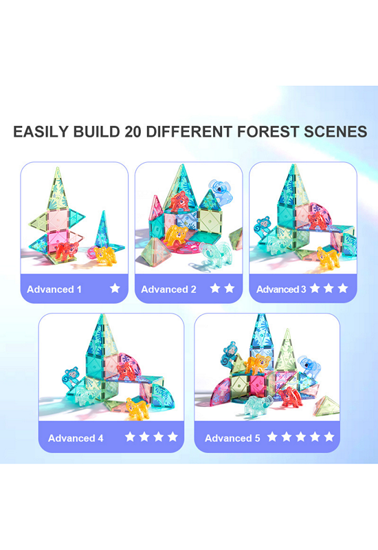 Comes in the form of a rainbow magnetic puzzle with a dreamy forest theme for children to practice thinking in two-dimensional and three-dimensional perspectives.