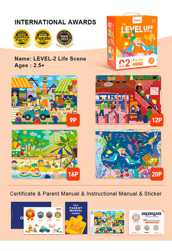 Puzzle Step2-Living Scenes from MIDEER brand. Enhance the development of learning places. Go with the picture on the jigsaw puzzle. There are pictures of 4 different locations in the box to enhance skills and learning. to the children well