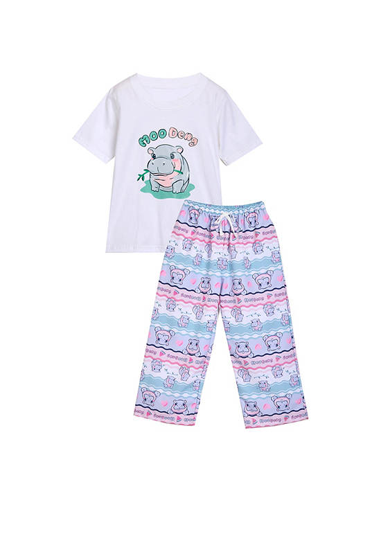Unisex Kids Set T-Shirt Round Neck + Pants Moodeng Print