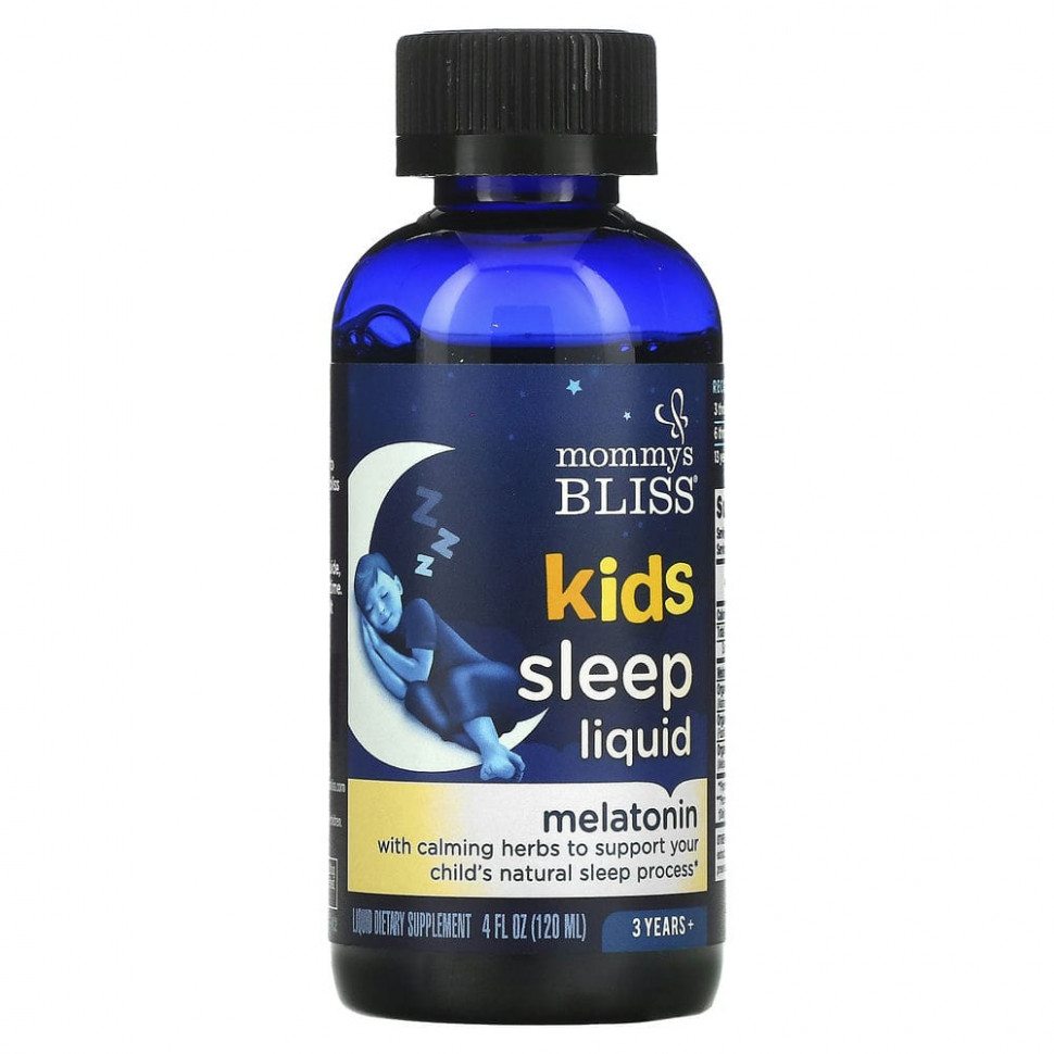 Жидкое средство для сна Kids содержит запатентованную смесь мелатонина, органической ромашки, мелиссы и пассифлоры, которые поддерживают спокойный сон и состояние умиротворения перед сном.