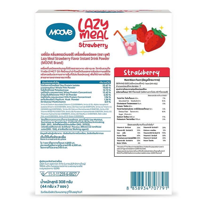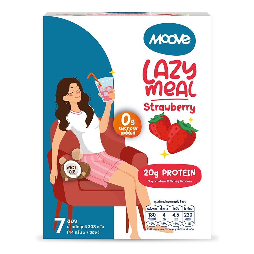 Moove Lazy Meal Strawberry Flavor Instant Drink Powder. Soy Protein & Whey Protein (Supplement)