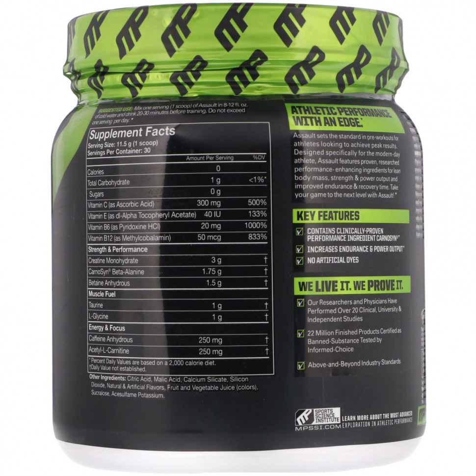 Assault задает стандарт качества предтренировочных комплексов для бодибилдеров, желающих достичь максимальных результатов. Разработанная специально для современных спортсменов, добавка Assault представляет собой комплекс клинически испытанных ингредиентов, направленных на ускоренный набор сухой мышечной массы, увеличение силы, повышение выносливости, рост энергии, повышение результативности и уменьшение периода восстановления. Перейдите на качественно другой уровень с Assault!