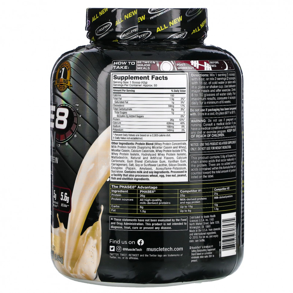 В целом, PHASE8® содержит источники белка, предназначенные для переваривания с разной скоростью, что приводит ваш организм в идеальное состояние для восстановления и восстановления.