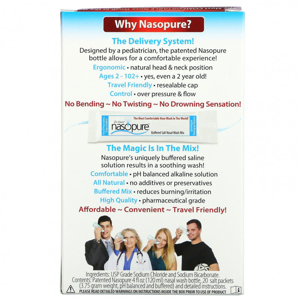 Забуференная соленая смесь Nasopure мягко промывает, увлажняет и очищает нос, это ваш личный фильтр!