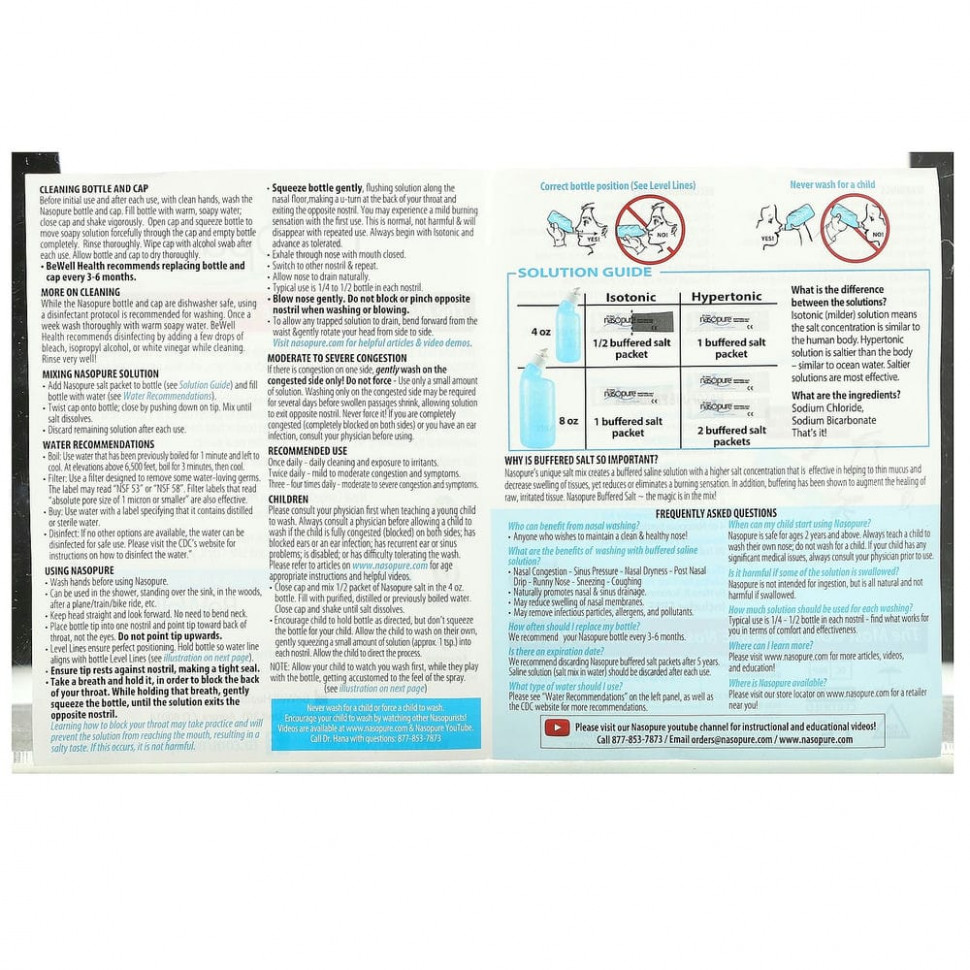 Nasopure снимает симптомы, связанные с аллергией, простудой, гриппом, синуситом и ринитом. Все начинается с запатентованного Nasopure эргономичного дизайна флакона, который позволяет идеально контролировать непрерывный поток раствора по носовым перегородкам. Такой дизайн устраняет необходимость отмерять дозу или выгинать горлышко, позволяет избежать общей жалобы на ощущение «утопления», часто возникающего при использовании других средств для промывания носа.