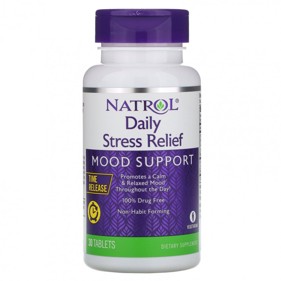 Ежедневное средство для снятия напряжения от Natrol — это естественный и безмедикаментозный способ восстановить чувство спокойствия и равновесия. В его состав входит смесь питательных веществ, которые способствуют регуляции и поддержке уровня серотонина — химического вещества в организме, отвечающего за улучшение настроения. Успокаивающее средство имеет медленное высвобождение, поэтому у вас будет сохраняться позитивное настроение и чувство равновесия в течение всего дня.