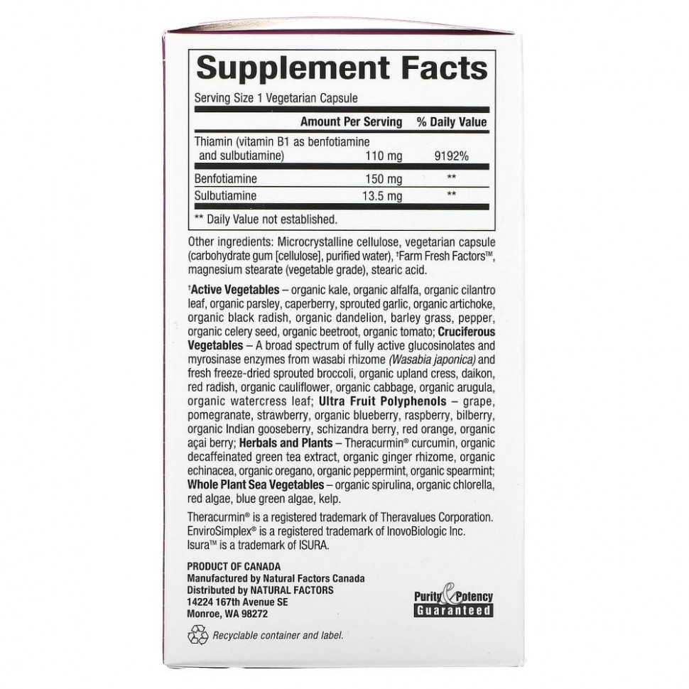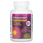 Тиамин (витамин B1) — это водорастворимый витамин, который поддерживает метаболизм глюкозы и способствует нормальному росту и развитию. Формула Natural Factors BioCoenzymated содержит специальную комбинацию бенфотиамина и тиаминдифосфата, которые являются коферментными формами витамина B1. Прием бенфотиамина и тиаминдифосфата обеспечивает более высокое всасывание и биодоступность по сравнению с формами без коэнзимов. Бенфотиамин жирорастворим, что позволяет ему проникать через клеточные мембраны. Кроме того, он стимулирует выработку транскетолазы, фермента, необходимого для поддержания нормального метаболизма глюкозы. Он также поддерживает нормальную работу нервной системы и помогает защитить ткани организма от конечных продуктов гликирования (AGE). Биоферментный бенфотиамин Natural Factors с тиаминдифосфатом — это действительно B1 нового поколения!