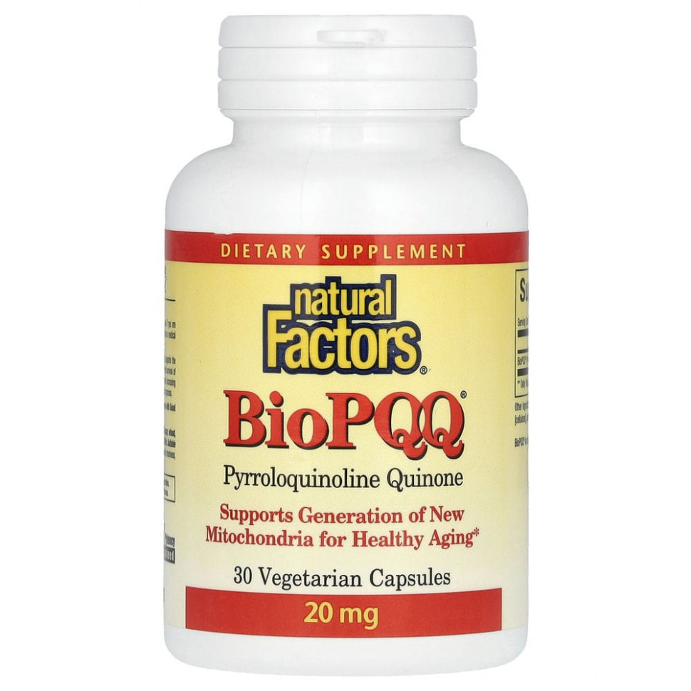 PQQ, считающийся новым кофактором с активностью антиоксидантных и витаминоподобных веществ, поддерживает биосинтез фактора роста нервов (NGF), ключевого белка, участвующего в росте и выживании нейронов. Добавки PQQ могут способствовать замедлению процесса старения и повышению уровня энергии. BioPQQ® из Японии производится с использованием запатентованного процесса естественной ферментации.