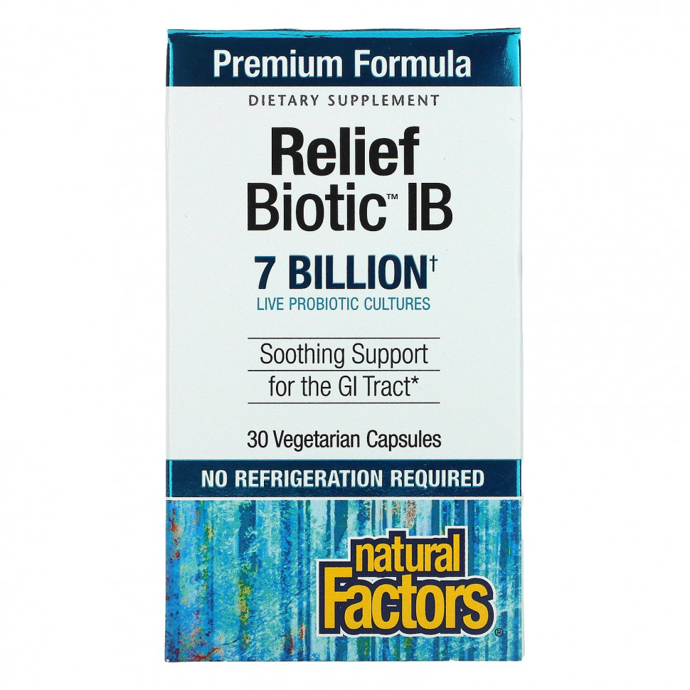ReliefBiotic ™ IB специально разработан для поддержания здоровья кишечника и пищеварения, сводя к минимуму периодические желудочно-кишечные расстройства. Эта удобная капсула для приема один раз в день содержит 4 уникальных штамма и гарантированно 7 миллиардов активных клеток для поддержания здоровой кишечной флоры и поддержания здоровья кишечника / желудочно-кишечного тракта.