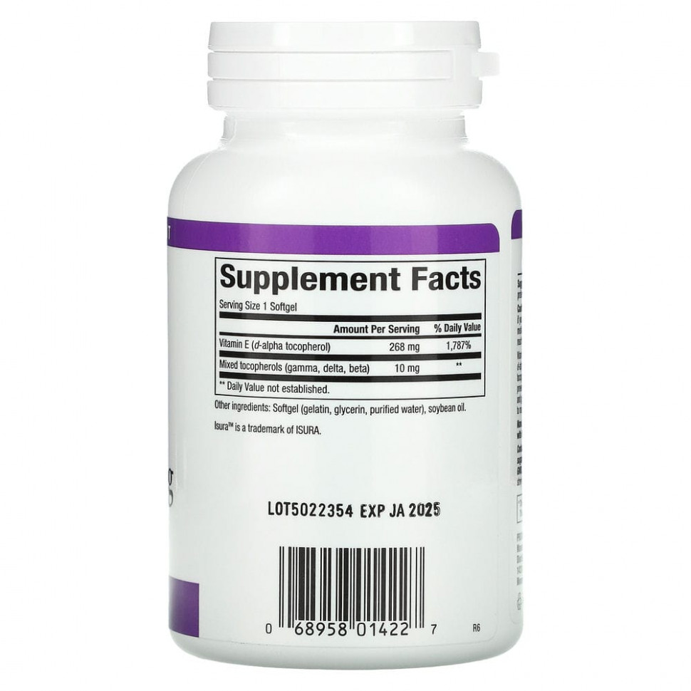 Наш витамин E (268 мг) — это высокоэффективный натуральный витамин Е в форме d-альфа-токоферола со встречающимися в природе гамма-, дельта- и бета-токоферолами. Витамин Е — антиоксидант, который защищает клеточные мембраны и предотвращает повреждение организма свободными радикалами. Он поддерживает сердечно-сосудистую систему и общее состояние здоровья. Ежедневный прием витамина Е особенно важен для поддержания здорового роста клеток и для людей, ведущих активный образ жизни.