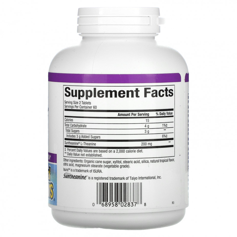 В состав Suntheanine входит чистый L-теанин, уникальная аминокислота, содержащаяся в зеленом чае, которая поддерживает душевное спокойствие и расслабление. Suntheanine производится с помощью запатентованного ферментативного процесса, который гарантирует получение чистого L-теанина для максимальной эффективности добавки. В форме жевательных таблеток со вкусом тропических фруктов.
