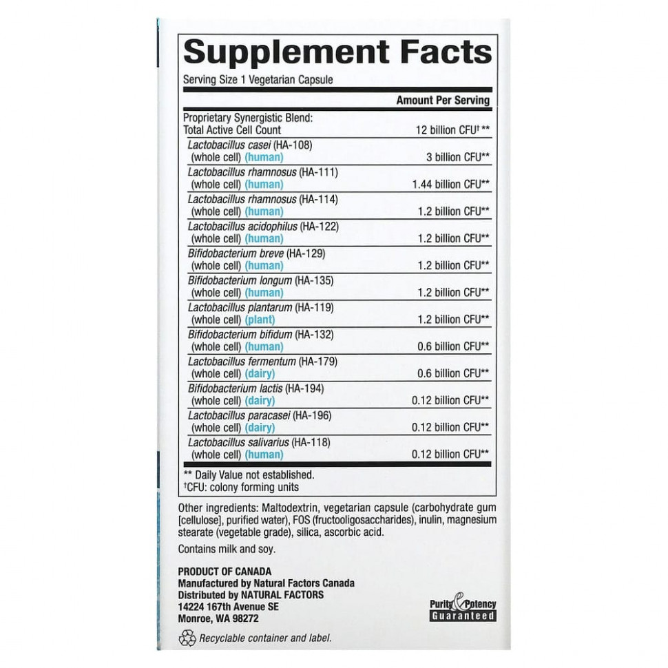 †Гарантированный минимум на капсулу на дату окончания срока годности: 12 миллиардов активных клеток.