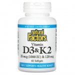 Одновременный прием витаминов D и K может обеспечить даже лучшую поддержку для здоровья костей и сосудов, чем прием этих питательных веществ по отдельности. Содержит биологически активную и высокобиодоступную форму D3 и МК-7.