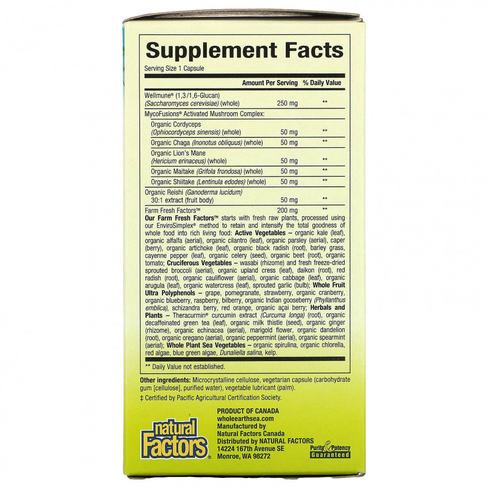 Super Mushroom сочетает в себе шесть органических грибов, бета-глюкан Wellmune® и богатый питательными веществами продукт Farm Fresh Factors® для создания жизненно важной биоэнергетической формулы для поддержки иммунитета. Мощный синергетический эффект шести грибов — майтаке, шиитаке, рейши, кордицепса, чаги и львиной гривы — является богатым источником биологически активного мицелия. Каждый гриб имеет хорошо известные преимущества для здоровья, которые поддерживают иммунитет, энергию и когнитивное здоровье, а также помогают справляться со стрессом. Бета-глюканы и факторы Farm Fresh Factors поддерживают общее состояние здоровья и хорошее самочувствие, повышая иммунитет организма.