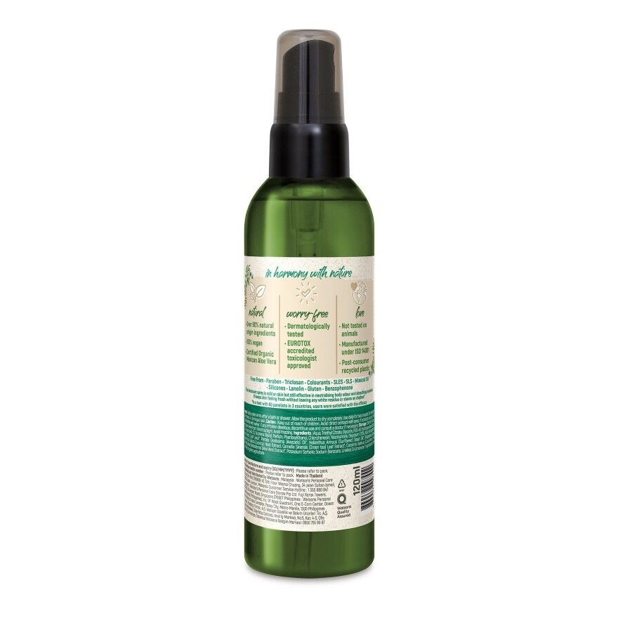 This deodorant spray is mild on skin but still effective in neutralising body odour and absorbing moisture. It keeps skin feeling fresh without leaving any white residue or stains on clothes.This product was formulated without over 20 unwanted ingredients. Additionally, the bottle is also made with 100 recycled plastic.