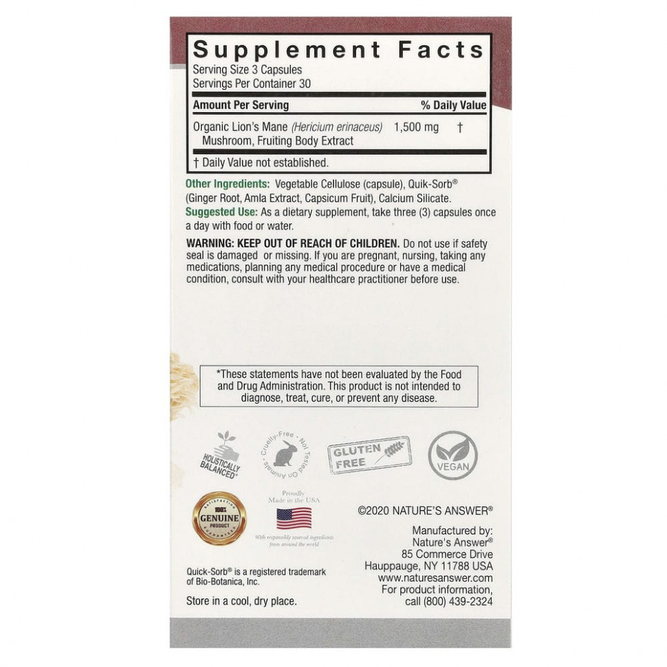 Ежовик гребенчатый (Hericium erinaceus) — поразительный гриб! Он растет на пнях и бревнах в Северной Америке, Азии и Европе и обычно встречается в конце лета и осенью. Традиционная китайская медицина использовала этот вид грибов из-за его положительных преимуществ и для поддержания «ци», жизненной энергии человека. Современная наука изучает способность этого гриба поддерживать когнитивные функции, а также здоровый иммунный ответ. Nature’s Answer’s® Lion’s Mane — это чистый органический порошок ежовика гребенчатого в веганской капсуле без стеарата магния, который дополнительно усилен формулой Quick-Sorb®, а также Nature’s Answer’s®, уникальной смесью из имбиря, плодов амлы и перца для лучшего усвоения.