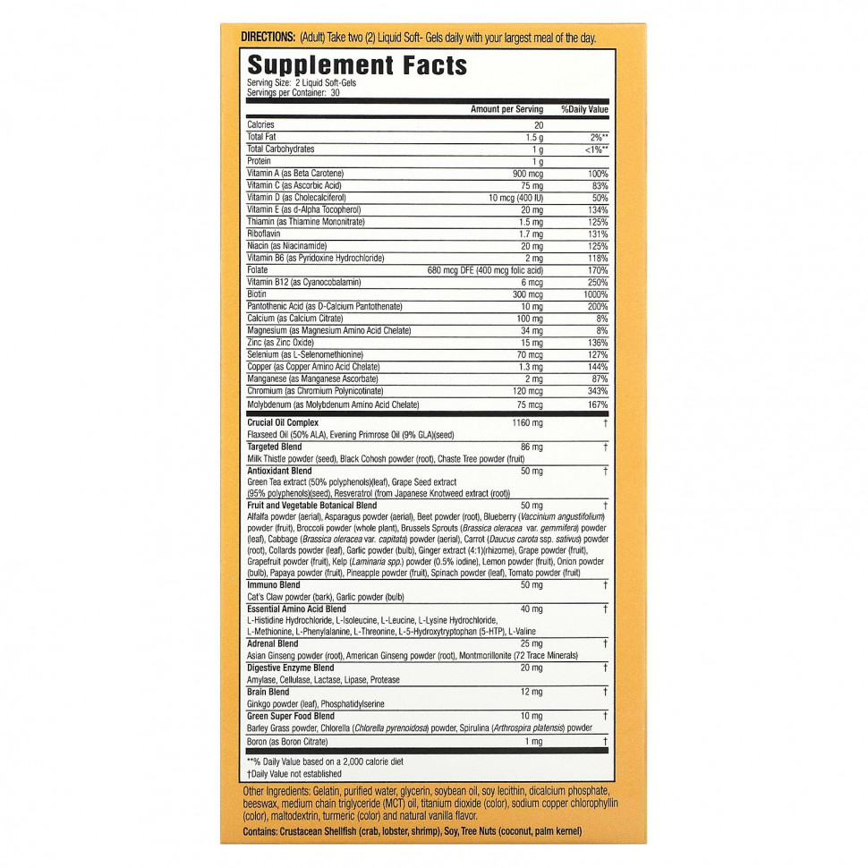 Мультивитамины для женщин 73 Nutrient Soft-Gel Multi от Nature’s Secret — это намного больше, чем обычные мультивитамины. Этот продукт был разработан с целью выйти за рамки основного состава важнейших витаминов и минералов, добавив к нему 10 дополнительных питательных смесей для оптимального самочувствия женщин.