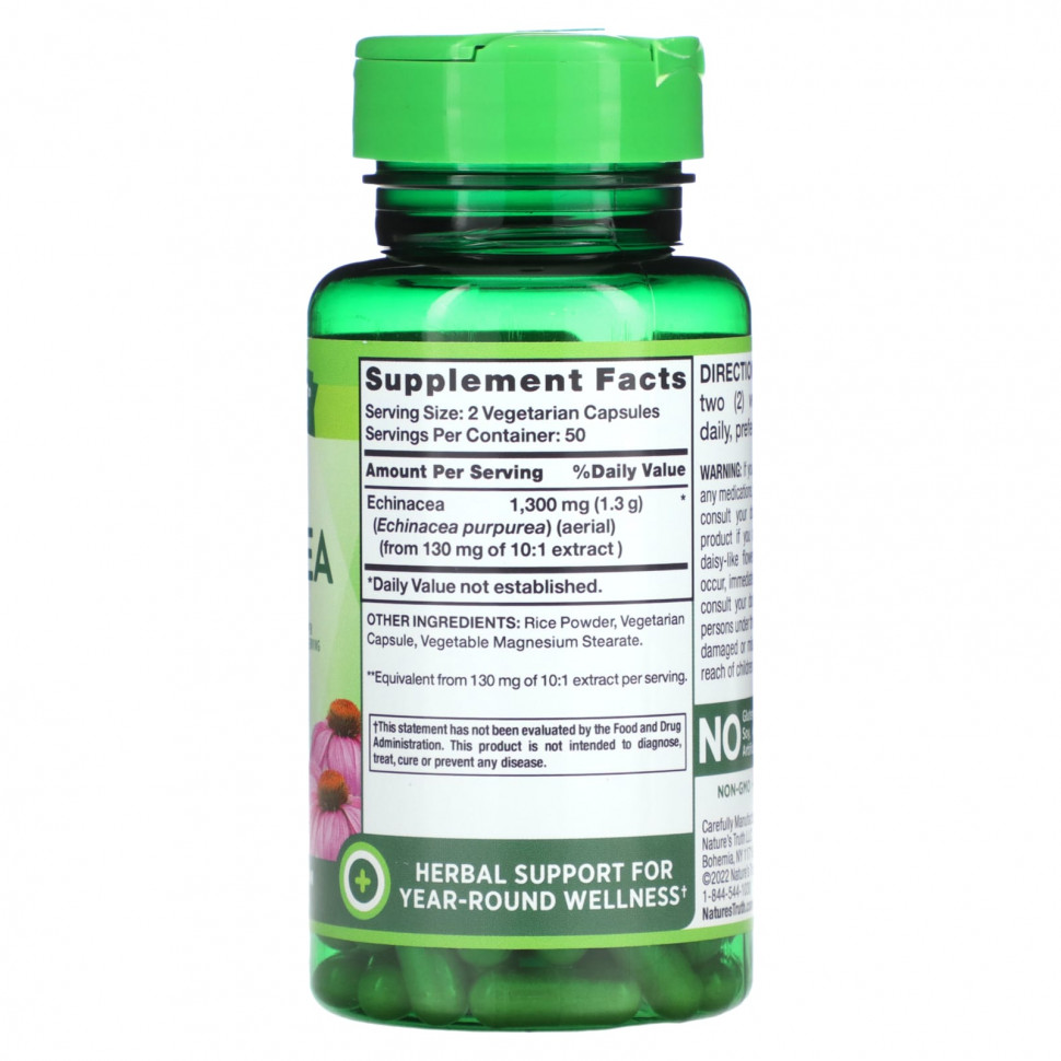 Со сменой времен года меняется и ваше здоровье! Эхинацея произрастает в Северной Америке. Это розовое цветущее растение, которое веками использовалось в комплексных оздоровительных практиках. Превосходная формула Nature’s Truth® содержит 1300 мг ** полезной эхинацеи в 1 порции, что упрощает добавление этой традиционной травы в ваш ежедневный рацион.