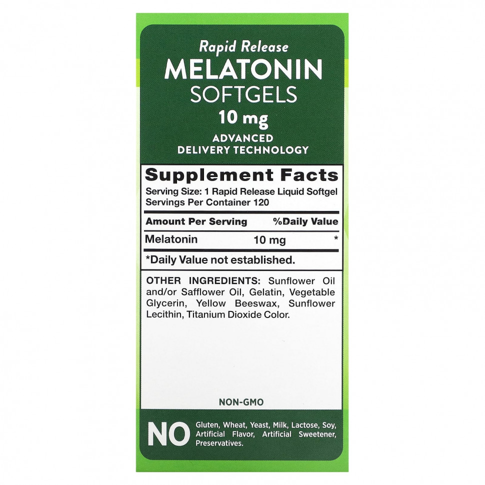 Капсулы с быстрым высвобождением мелатонина от Nature’s Truth обеспечивают поддержку, необходимую для спокойного, расслабляющего сна и периодической бессонницы. Благодаря использованию передовых технологий эти капсулы с быстрым высвобождением легко глотаются и способствуют быстрому высвобождению мелатонина в организм, поэтому вы можете сразу же начать пользоваться его преимуществами.