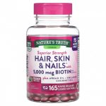Каждая порция Nature’s Truth для волос, кожи и ногтей * содержит 5000 мкг биотина (также известного как витамин B7), важного витамина группы B, который необходим вашему организму, но не может его вырабатывать. Эти мягкие капсулы с быстрым высвобождением содержат витамин С, аргановое масло, коллаген и кокосовое масло для дополнительной поддержки.
