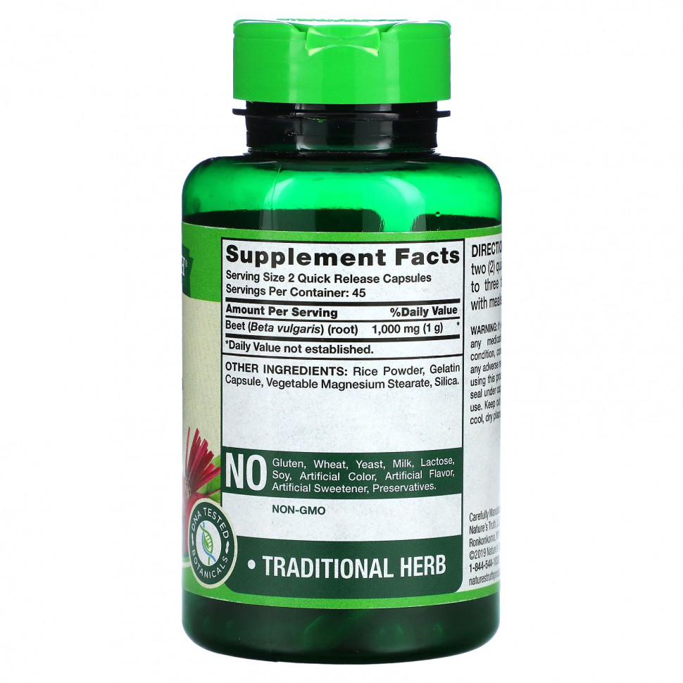 Наша свекла содержит традиционные полезные травы для поддержания вашего здорового образа жизни. Каждая порция насыщена питательными веществами, включая витамины A и C, а также важное минеральное железо. В каждой порции содержится 1000 мг чистой свеклы. Свекла — это корнеплод, известный своим землистым вкусом и может иметь цвет от белого до темно-красного или фиолетового. Как естественный источник растительных пигментов и антиоксидантов, свекла Nature’s Truth извлекается из беты обыкновенной, которая в изобилии растет по всей Северной Америке и Европе. Наши капсулы из свеклы с быстрым высвобождением — отличный способ добавить эту традиционную траву в свой распорядок дня. Мы знаем, насколько важно чистое здоровье для вас и тех, кого вы любите. Вот почему мы используем только самые лучшие ингредиенты для создания нашей свеклы. Наши капсулы быстрого высвобождения не содержат ГМО, глютена, молочных продуктов и сои и созданы без каких-либо искусственных красителей, искусственных ароматизаторов, искусственных подсластителей и консервантов, поэтому вы можете получить чистое и честное питание, от которого вы привыкли. Истина природы.