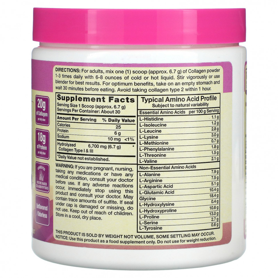Накормите свою внутреннюю красоту с помощью коллагенового протеинового порошка от Nature’s Truth®! Коллаген, содержащийся в наших мышцах, костях, коже и сухожилиях, является одним из самых распространенных белков в нашем организме и действует как жизненно важный строительный блок для естественного сияния вашей кожи, ваших великолепных волос и крепких ногтей. Наш ультрагидролизованный коллагеновый порошок, изготовленный из коров, выращенных на пастбищах, содержит 18 граммов протеина и 20 граммов коллагена на ежедневную порцию. Наша специально разработанная формула содержит коллаген типа 1 и 3, лучше способствуя увлажнению вашей кожи и структуре соединительной ткани вашего тела.
