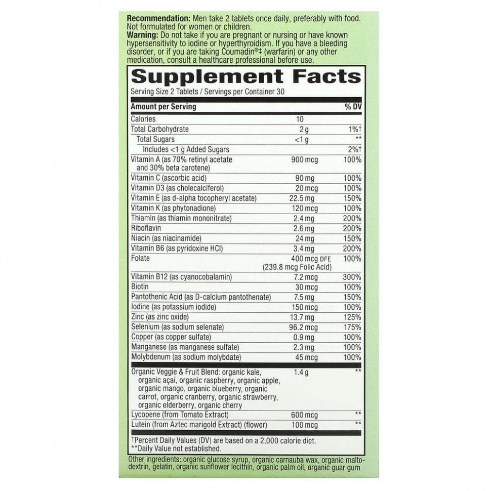 † 1,4 г смеси фруктов и овощей на порцию. Каждая порция (2 таблетки) содержит эквивалент 1 чашки листовой зелени (объем свежего продукта).
