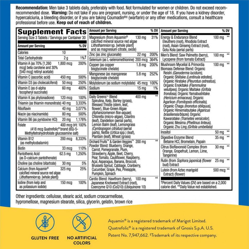 Мультивитаминный комплекс с питательными смесями, включая