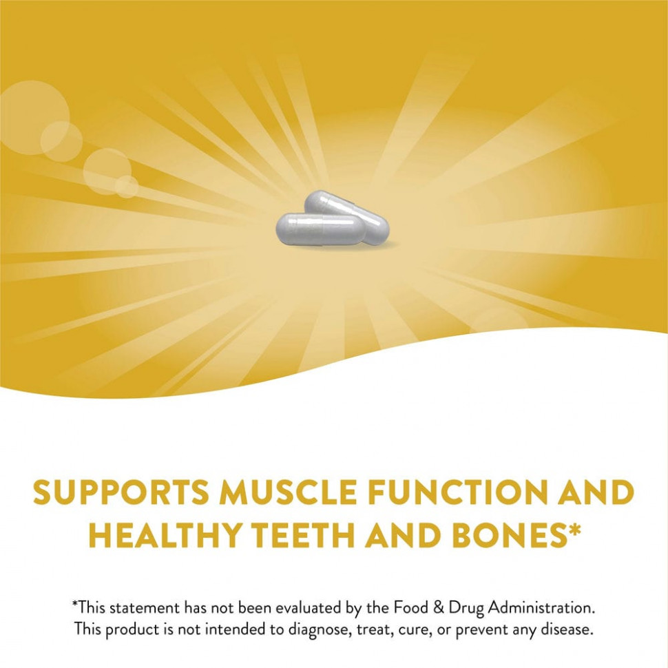 Кальций необходим для здоровья зубов и костей, а также нормального функционирования мышц. В состав цитрата кальция входит смесь цитратной, малатной и карбонатной форм. Этот продукт тщательно проверяется и производится в соответствии с самыми высокими стандартами качества.