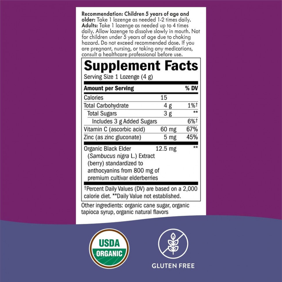 Каждый леденец содержит 12,5 мг экстракта черной бузины.