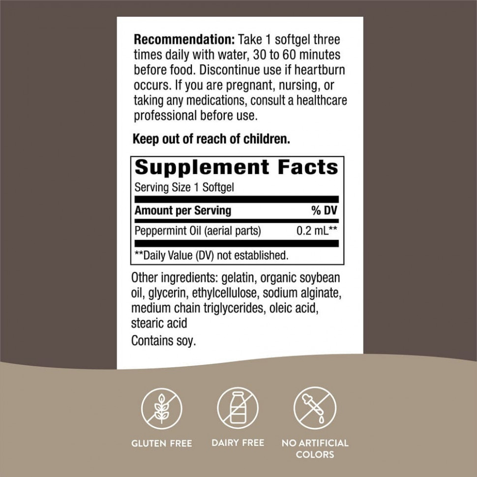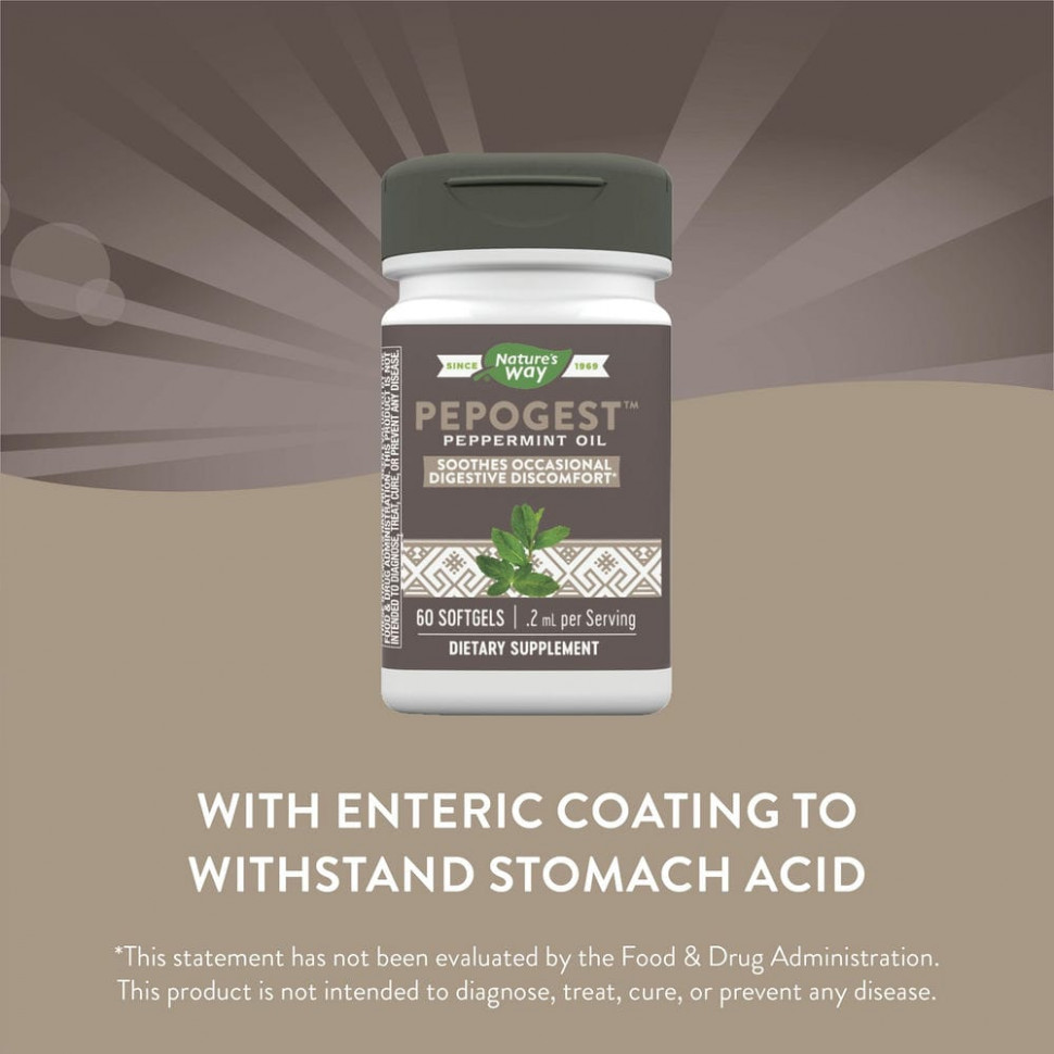 Pepogest ™ содержит масло мяты перечной в мягких гелевых капсулах с энтеросолюбильным покрытием, которые выдерживают попадание желудочной кислоты непосредственно в кишечник.