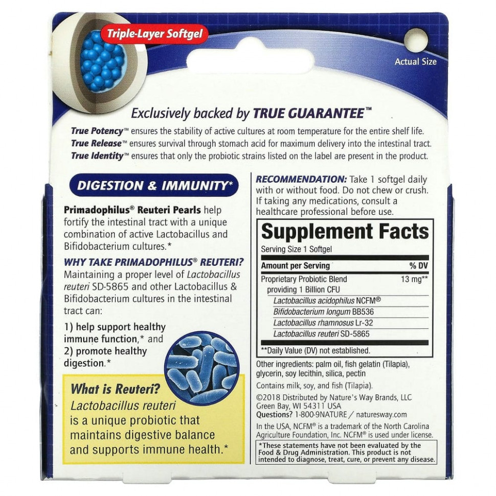Добавка Reuteri Pearls от Primadophilus® помогает укрепить кишечник с помощью уникального сочетания активных культур лактобактерий и бифидобактерий.