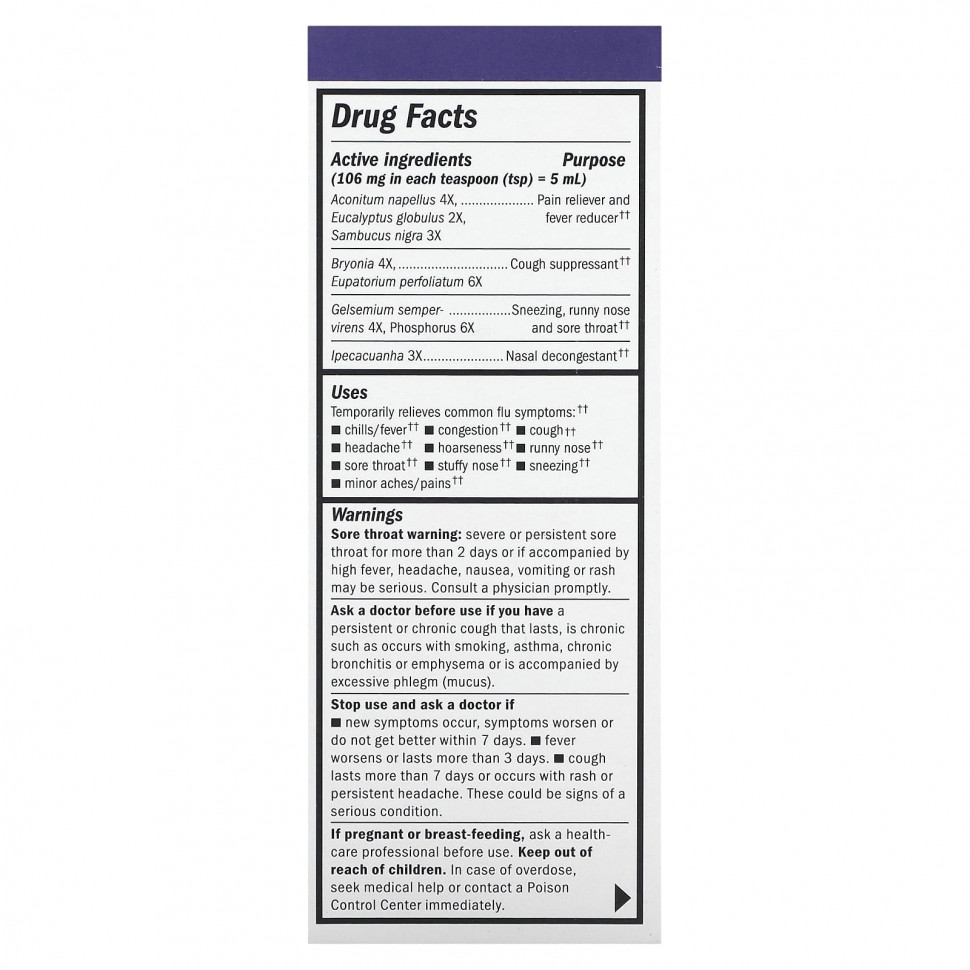 Aconitum napellus 4X, Eucalyptus globulus 2X, Sambucus nigra 3X | Обезболивающее и редуктор лихорадки |
