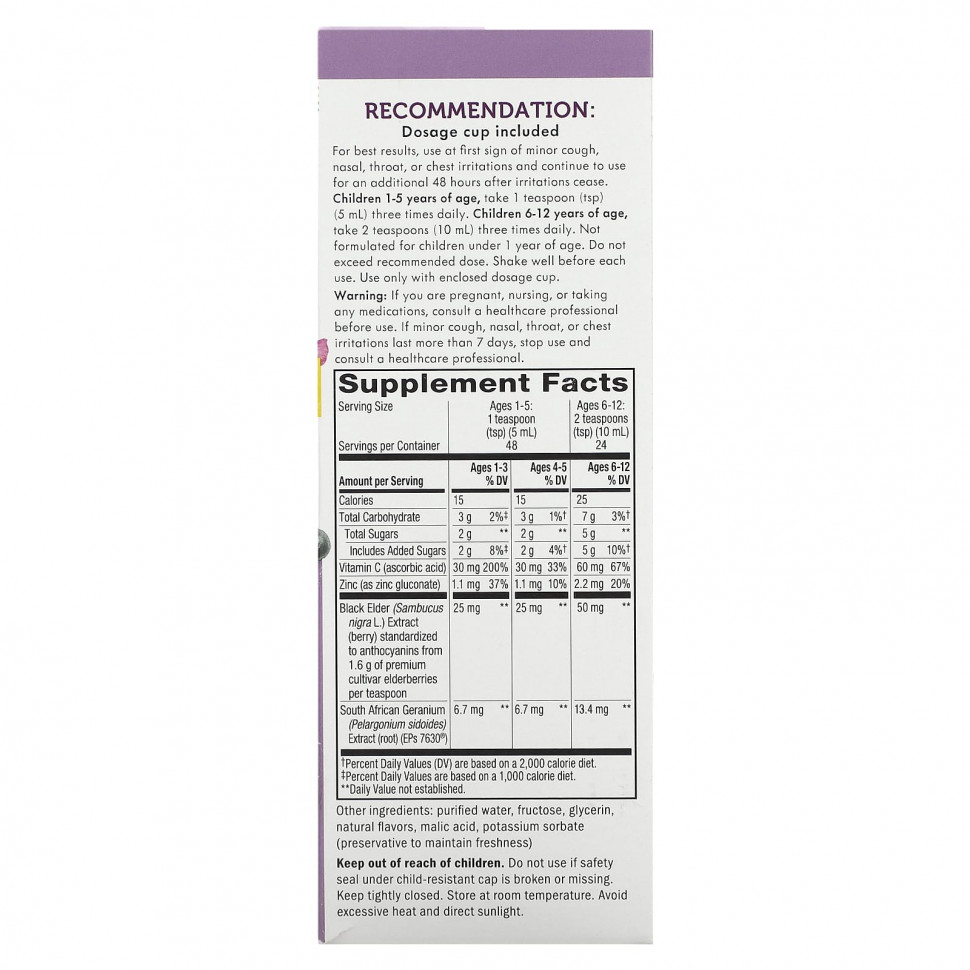 Детям от 1 до 5 лет принимать по 1 чайной ложке (5 мл) три раза в день. Детям от 6 до 12 лет принимать по 2 чайной ложки (10 мл) три раза в день. Не предназначено для детей младше 1 года. Хорошо встряхните перед использованием. Для дозировки продукта используйте только мерный стаканчик в комплекте.