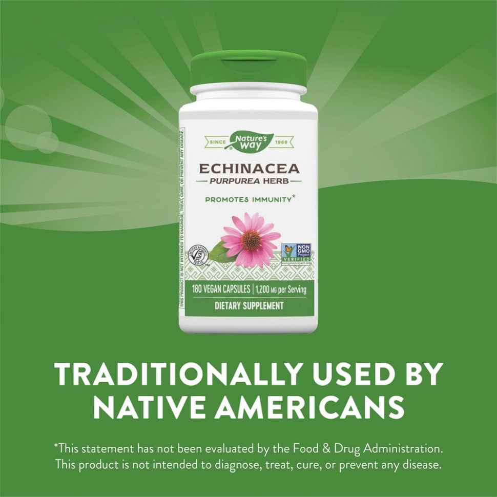 Эхинацея способствует укреплению иммунитета и веками использовалась для этой цели коренными американцами. Она произрастает на Среднем Западе и в равнинных регионах Северной Америки. Ее можно легко узнать по характерным ярко-розовым или фиолетовым цветам.