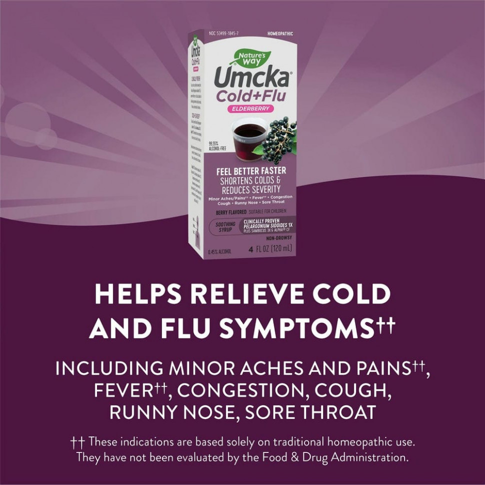Клинически протестированная умка [Pelargonium sidoides 1X] плюс Sambucus 3X & Alpha® CF объединен в одну полную комплексную формулу для лечения простуды и гриппа.