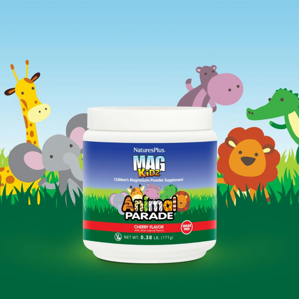 ‘Парад зверей’ MagKidz содержит полноценный, натуральный, незаменимый магний в высокобиодоступной форме, с прекрасными вкусами для ваших любимых детей. Магний, который в питании детей часто выпускают из внимания, является основным элементом, отвечающим за расслабление мышц. MagKidz является превосходной формой магния для расслабления мышц, а также для силы и здоровья костей, нормального роста и развития и общего хорошего самочувствия.