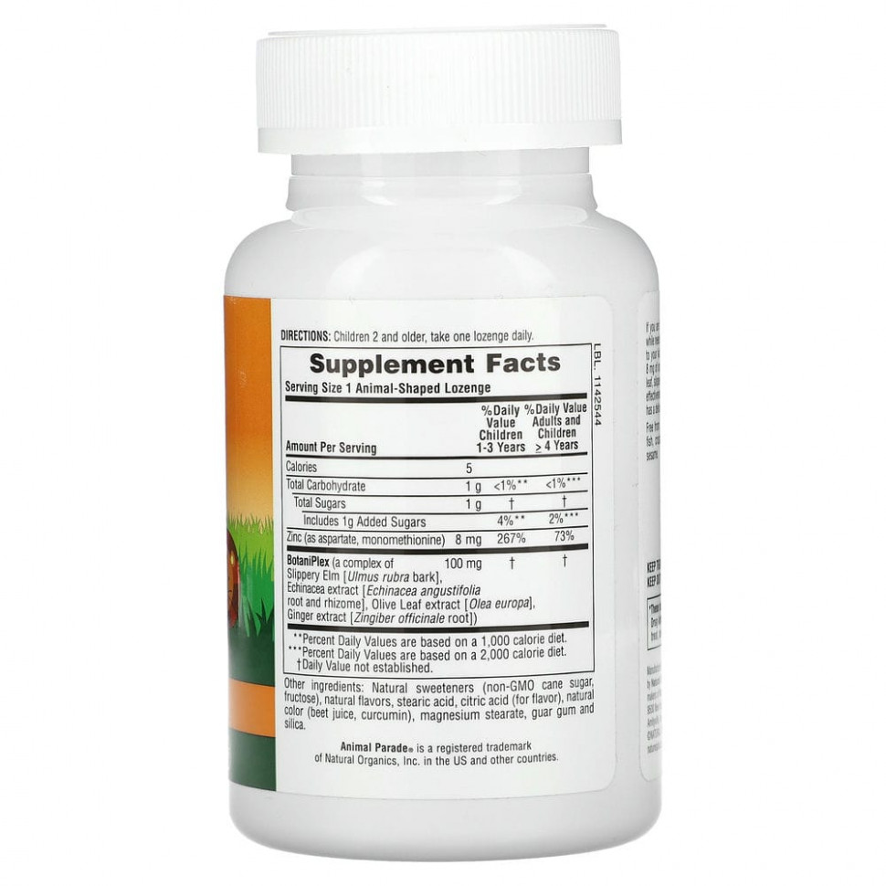 Пастилки Animal Parade® KidZinc® имеют точно выверенный состав, в котором сочетаются две формы органического цинка в хелатной форме и активные растительные компоненты. Каждая пастилка быстрого действия содержит 8 мг органического цинка в хелатной форме высочайшего качества: элементарный цинк из аспартата цинка и монометионин цинка. Пастилки KidZinc также содержат успокаивающую комбинацию травяных экстрактов, в том числе эхинацеи, оливкового листа, красного вяза и имбиря, которые веками используются практикующими врачами.