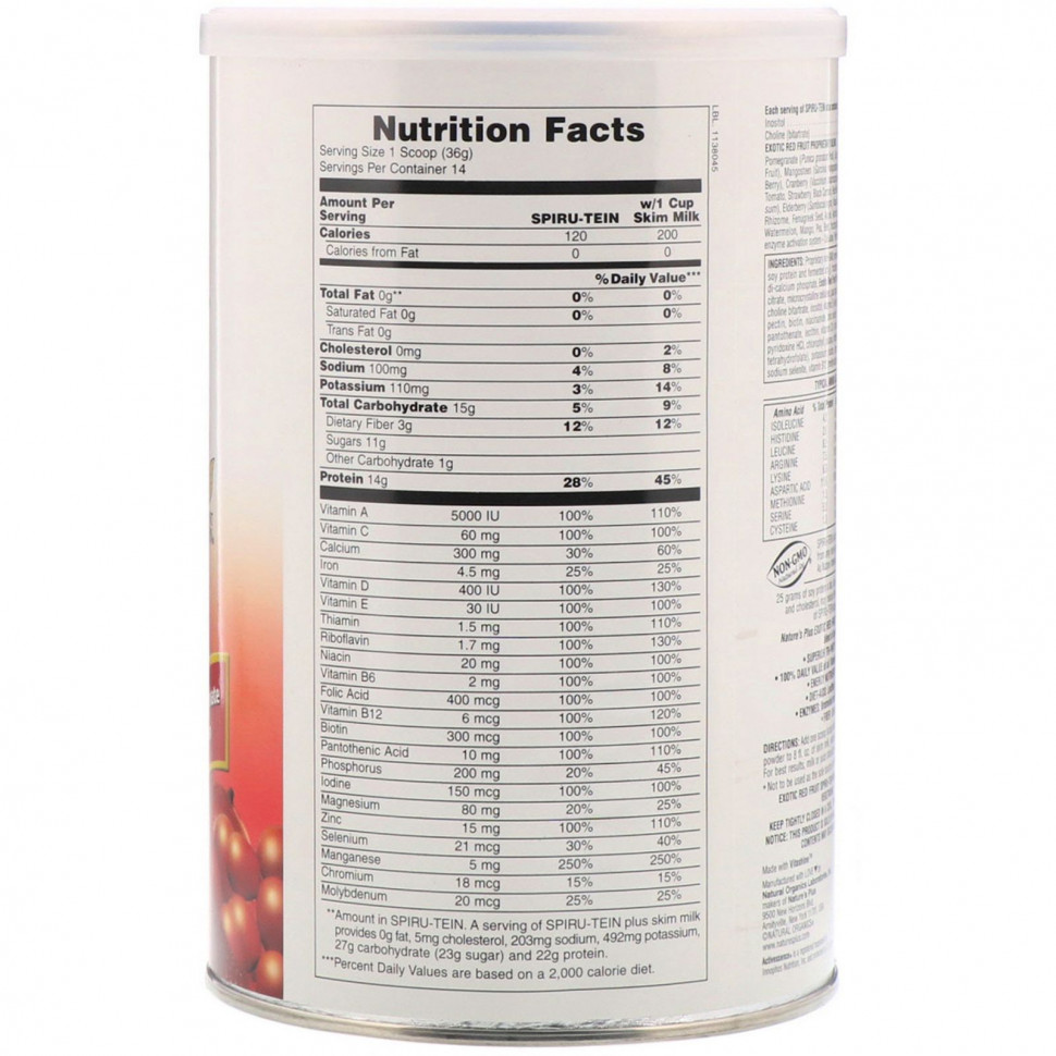 Порошок Spiru-Tein из экзотических красных фруктов от Nature’s Plus содержит уникальное сочетание ингредиентов, включая …
