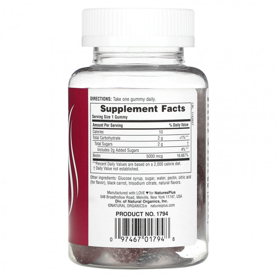 Биотин 5000 мкг от NaturesPlus® обеспечивает мощные преимущества этого ключевого питательного вещества для красоты. Биотин поддерживает волосы, кожу и ногти, способствует выработке энергии, метаболизму сжигания жира, здоровому контролю уровня сахара в крови и здоровой иммунной системе. 5000 мкг биотина NaturesPlus обеспечивает эти важные преимущества в виде забавной и вкусной жевательной мармеладки.