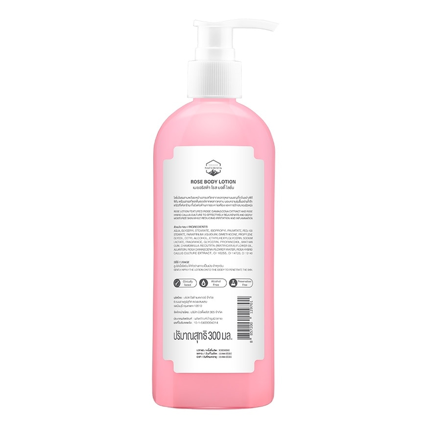 Naturista Rose Body Lotion Rose extract lotion Makes the skin not dry. Reduce irritation Against various skin allergies and strengthens the creation of new tissues, making the skin strong Protect your skin from pollution.