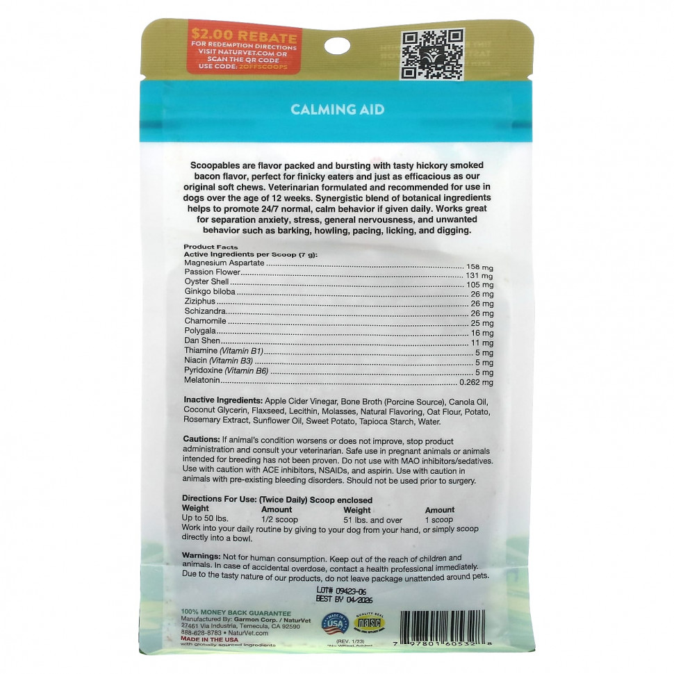 Scoopables упакованы по вкусу и обладают восхитительным вкусом копченого бекона, идеально подходят для привередливых едоков и так же эффективны, как и наши оригинальные мягкие жевательные таблетки. Разработано ветеринаром и рекомендовано для собак старше 12 недель. Синергетическая смесь растительных ингредиентов при ежедневном приеме способствует нормальному и спокойному поведению в режиме 24/7. Отлично подходит для снятия беспокойства, стресса, общей нервозности и нежелательного поведения, такого как лай, вой, походка, облизывание и копание.