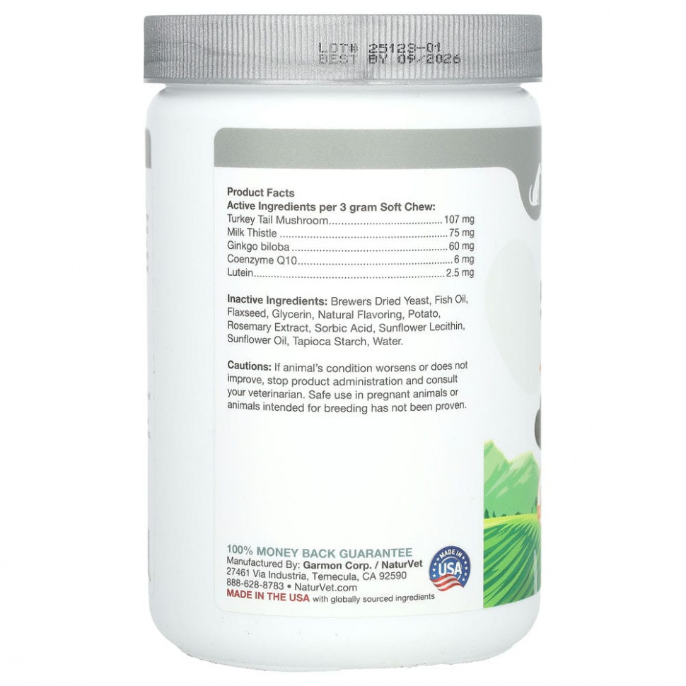 Специально разработан для пожилых собак, но может использоваться для собак старше 1 года или при необходимости максимальной поддержки. Содержит уникальную смесь грибов-индюков, расторопши, гинкго билоба, коэнзима Q10 и лютеина, которые работают синергетически, помогая поддерживать здоровые когнитивные функции, здоровье глаз, печени, сердца и общее здоровье иммунной системы.