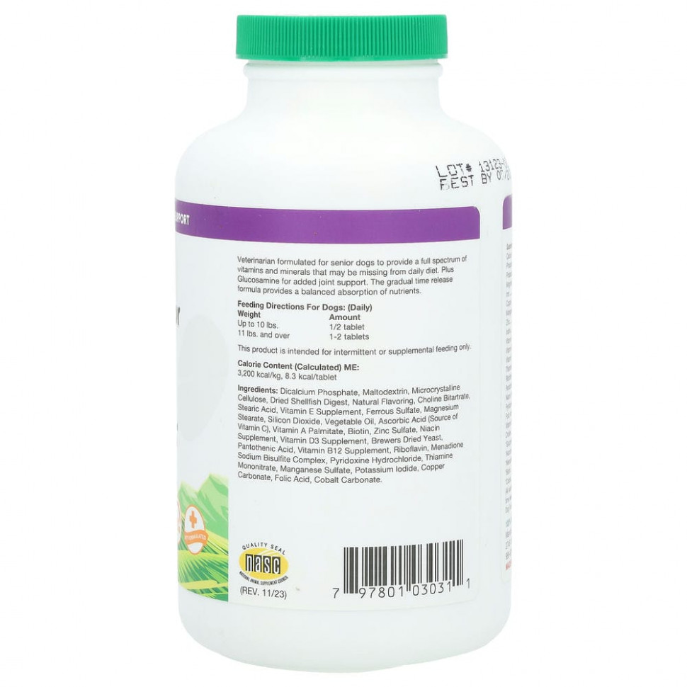 Разработано и рекомендовано ветеринаром специально для пожилых собак. Обеспечивает полный спектр витаминов и минералов с глюкозамином для дополнительной поддержки суставов.