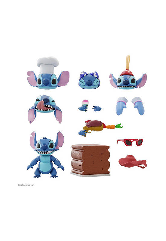 NECA This Super7 ULTIMATES! Stitch figure allows us to relive the classic animated film, Disney’s Lilo and Stitch. This 7″ highly-articulated figure comes with alternate heads and hands, carrot blaster, cake, sunglasses, and soft goods cape.
